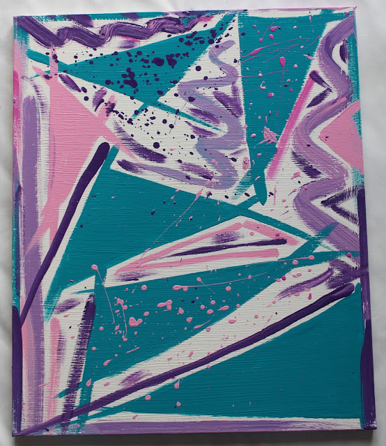 L'idea per questo quadro mi è venuta leggendo "Il mondo nuovo" di Aldous Huxley, dove i bambini nascono in provetta, e infatti ho cercato di rappresentare una sorta di fecondazione tra i cromosomi XX con il colore rosa, e quelli XY in viola. Infine i grandi triangoli dovrebbero rappresentare degli embrioni. Il significato del quadro non è molto chiaro nemmeno a me..però il risultato mi piace, e a voi?